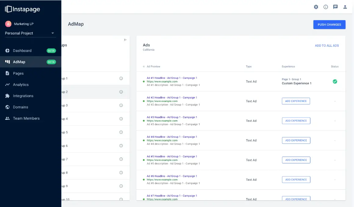 AdMap™ provides a visual layout of the pre- and post-click stages of ad campaigns. With AdMap™, it’s easy to identify which ads and audiences are missing relevant landing pages and quickly solve the problem with personalized pages that are optimized for conversions.