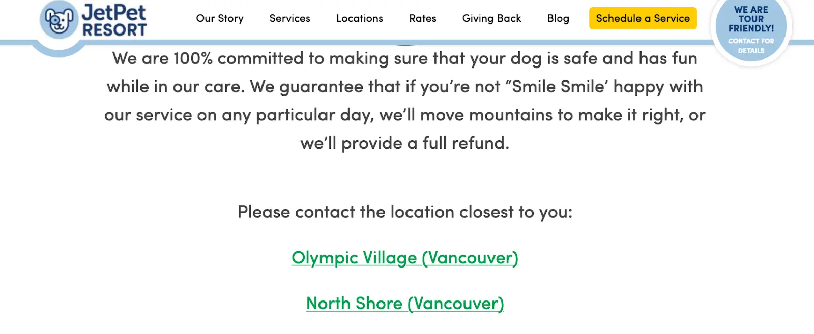 JetPet Resort segments its offers based on location to offer personalized services to audiences in these locations.
