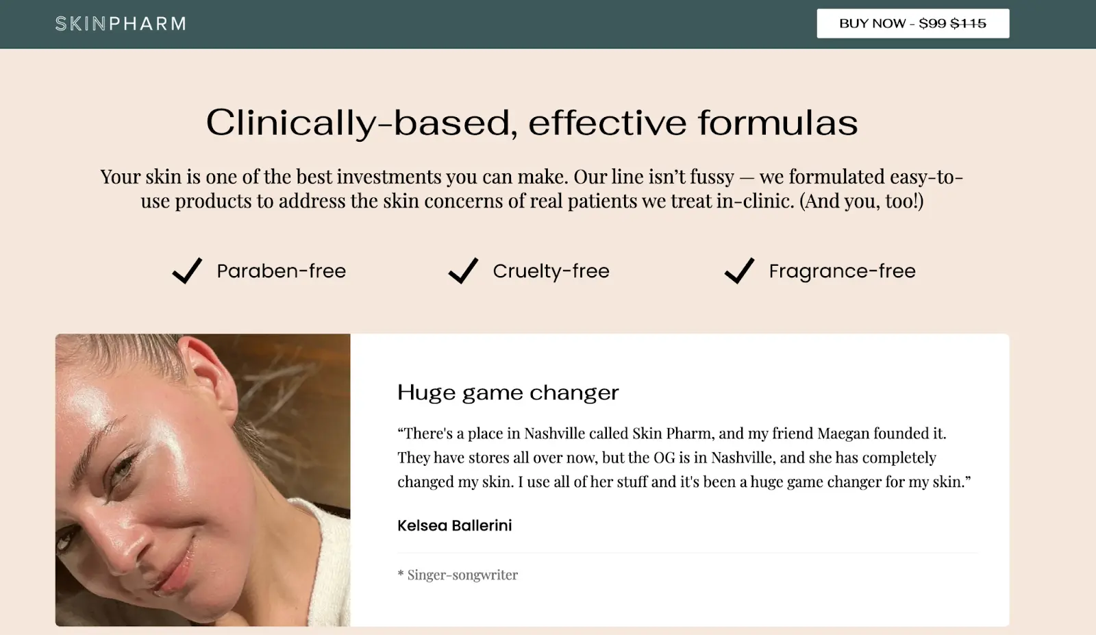 War Paint has darker brand colors and simple, succinct language, while Skinpharm has lighter colors and more detailed product descriptions.